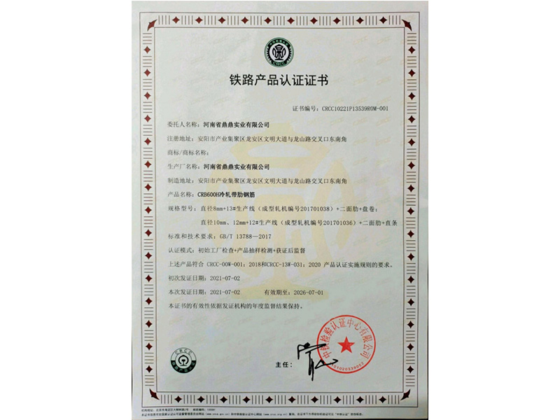 鐵路產品認證證書